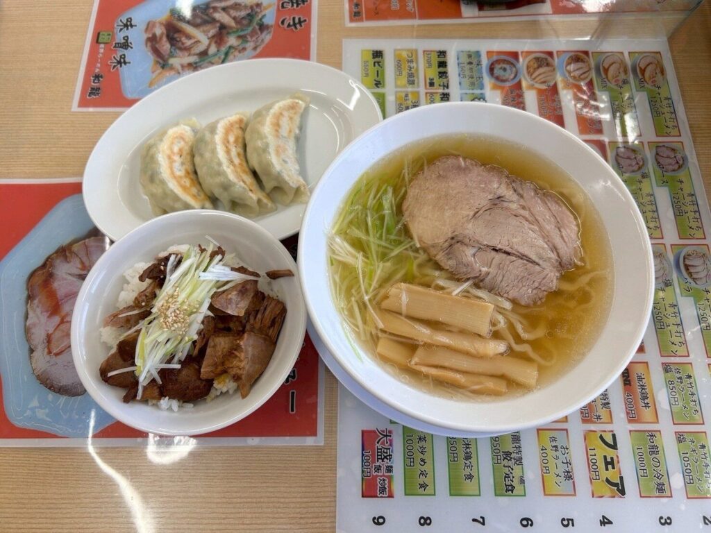 「青竹手打佐野らーめん 和龍」は群馬県邑楽群にお店を構える、佐野らーめん予備校出身の店主が営む人気店。広めのテーブル席を備えた快適な空間で、手打ちの温もりが宿る優しいスープや肉厚大判チャーシュー、1,100円でお得に楽しめる「本日のフェア」が味わえる、青竹一本に心を込めた姿勢が評判の実力店です。